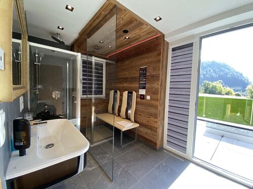 Modernes Appartement mit ca. 85 m² bestehend aus: 2 getrennten Schlafzimmern, Wohnküche mit Sofa (ausziehbar für 5. und 6. Person) und Sat-TV, Essbereich; Badezimmer mit Dusche, separates WC; Küchenzeile komplett ausgestattet mit Backofen, Elektroherd, Spülmaschine, Mikrowelle, Infrarotkabine, uvm.